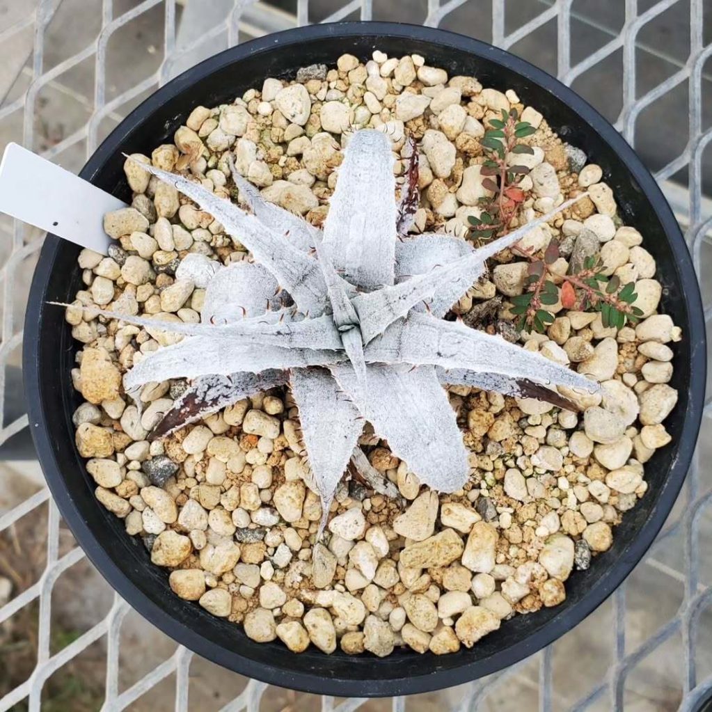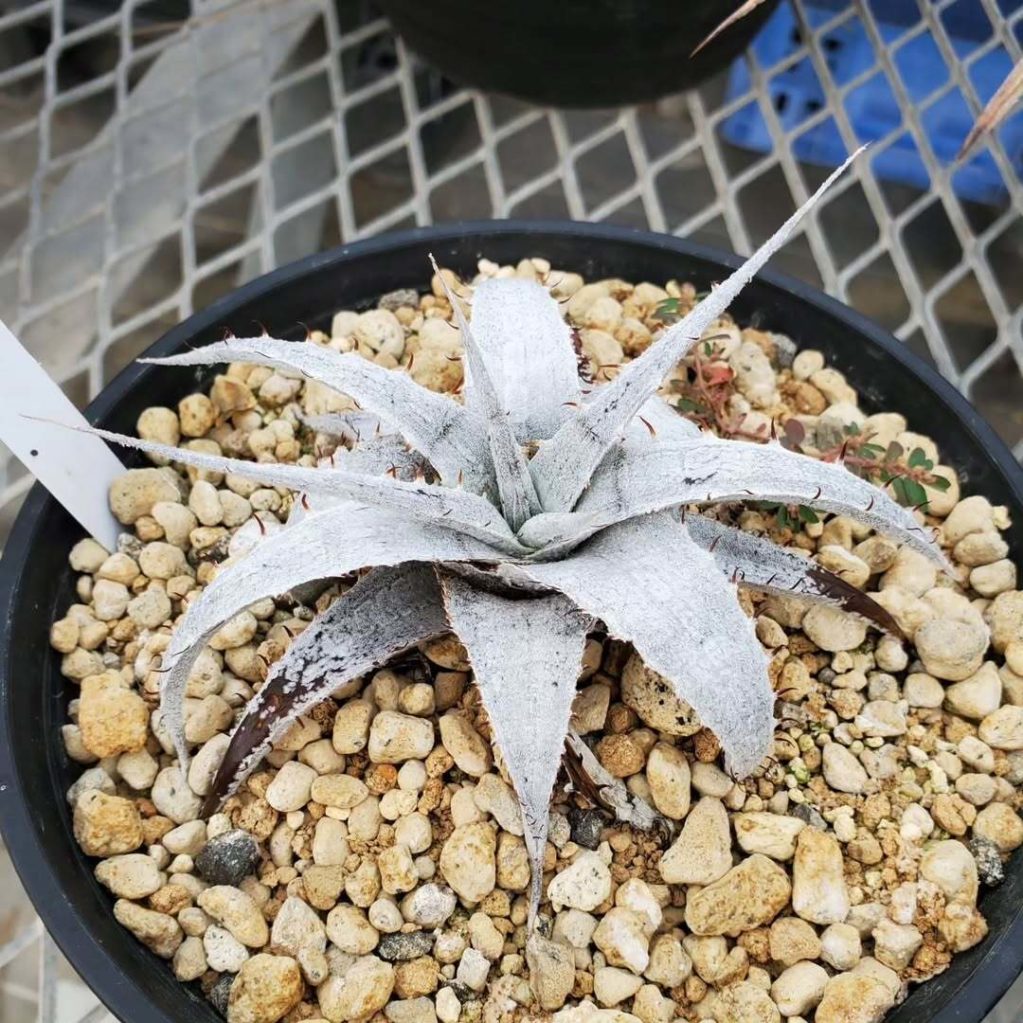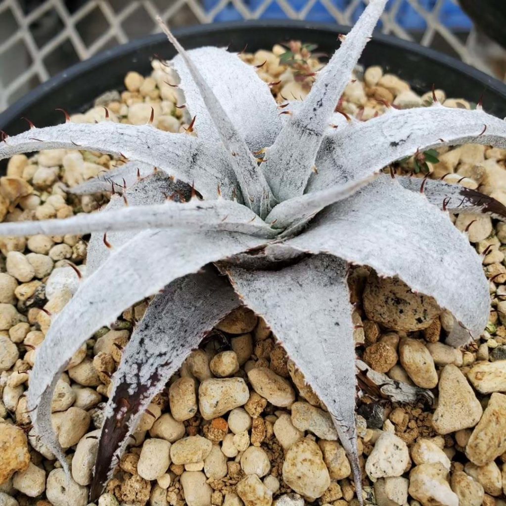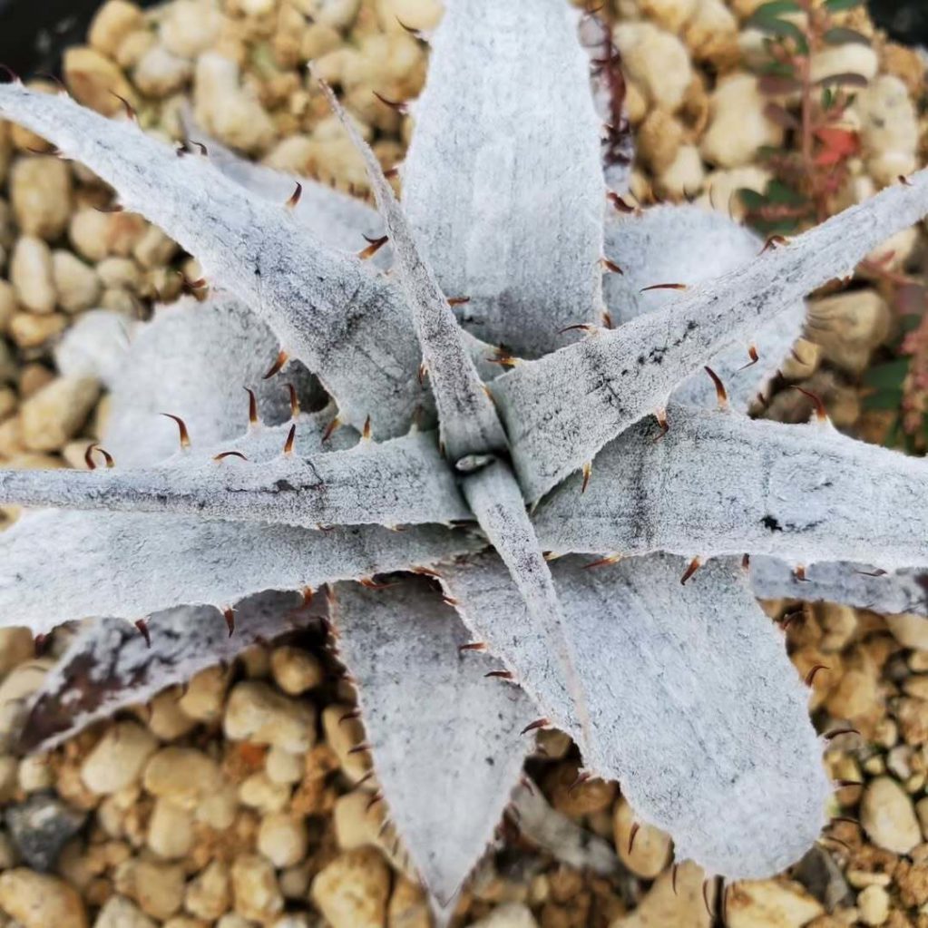 Thorns & Leavesタカキさん(@takaki_ito)から譲っていただいた、ディッキア・ブラウニー実生:Dyckia braunii Seedling。ほぼ無加温で越冬させたので、境界線出ちゃった💦さあここから一気に開花サイズまで行っちゃって下さい🙏