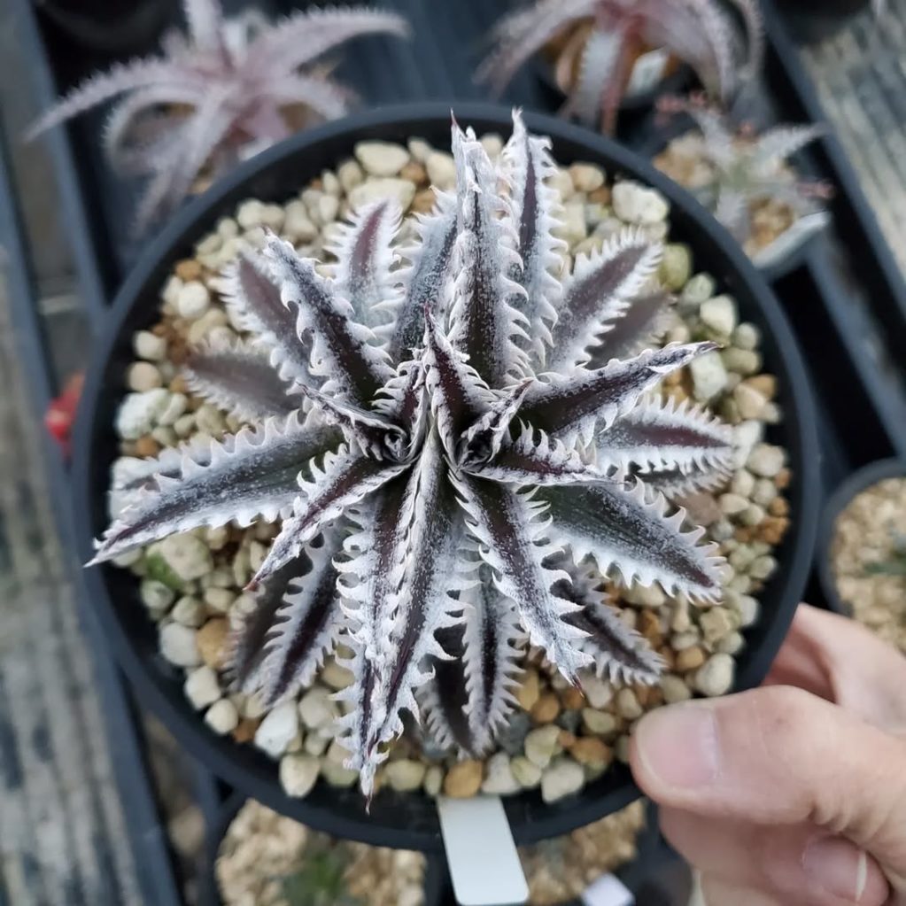 僕のオリジナル。開花を確認したら、名前を付けてあげよう✨交配内容はDyckia ‘Red Crimson’ x ‘Jaws’(管理No.NNN-A015a)。