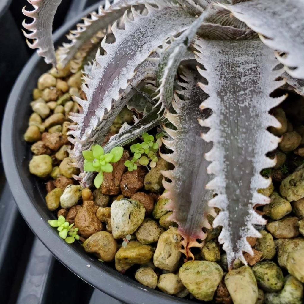 僕のオリジナル第1弾も、ようやく子株が😍次に出るイベントでリリースできたらいいな〜。交配内容はDyckia ‘Red Crimson’ x ‘Jaws’(管理No.NNN-A015a)。